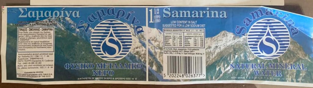 Ψάχνοντας στο αρχείο μου βρήκα το πρώτο διαφημιστικό φυλλάδιο όταν είχε ξεκινήσει το εργοστάσιο εμφιάλωσης νερού στην Σαμάρινα και την ετικέτα που είχε στις πλαστικές φιάλες.