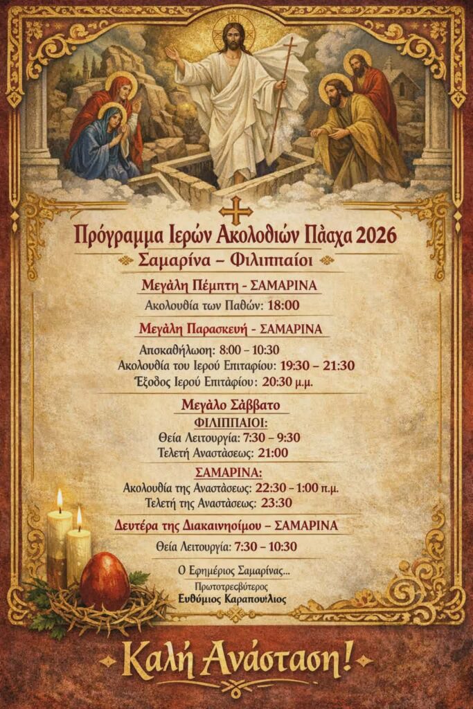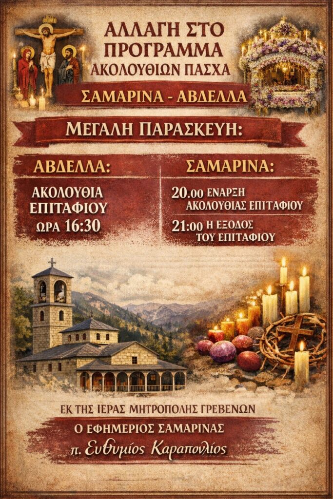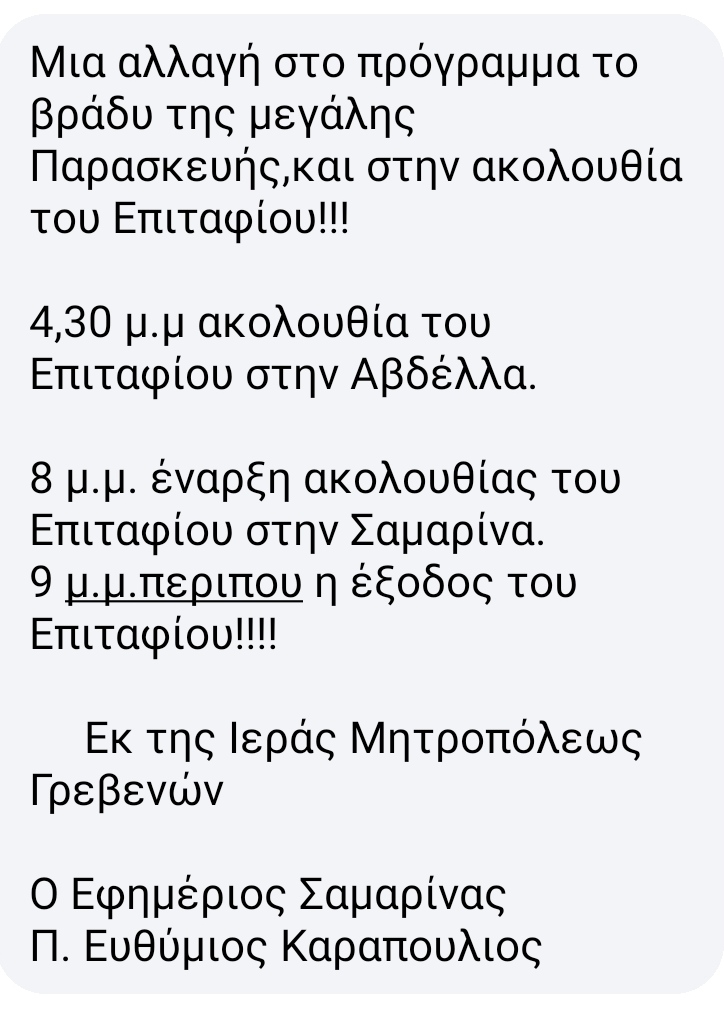 Μια αλλαγή στο πρόγραμμα τό βράδυ της Μ. Παρασκευής και στην Ακολουθία του Επιταφίου.