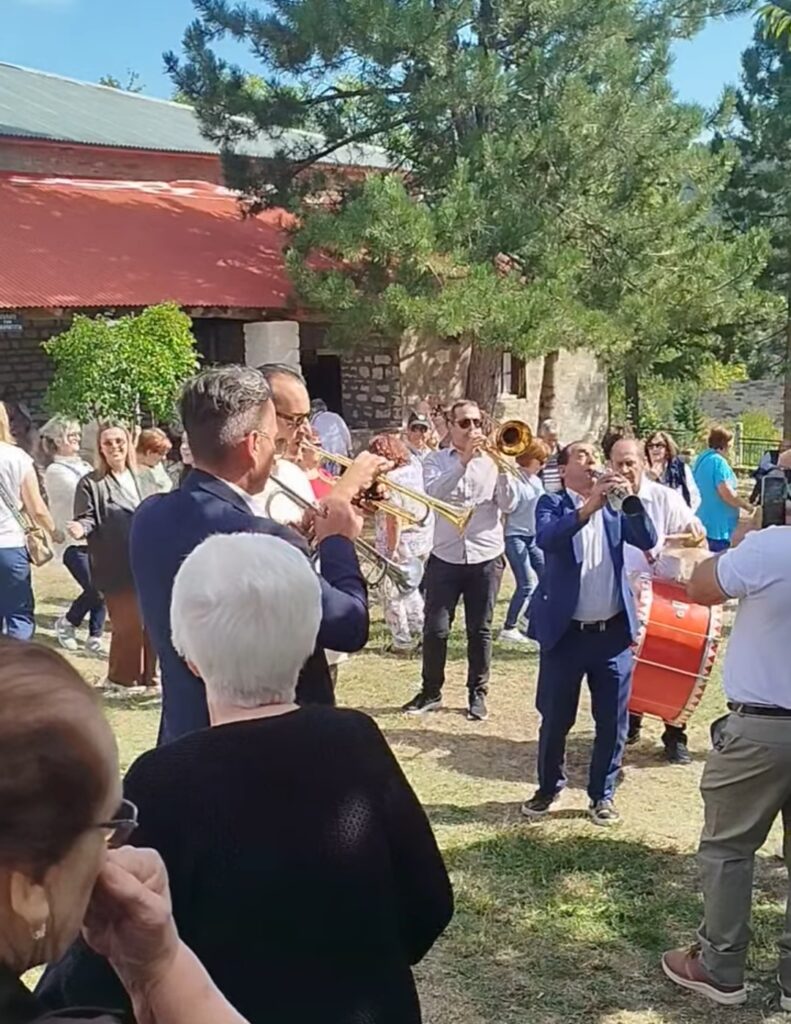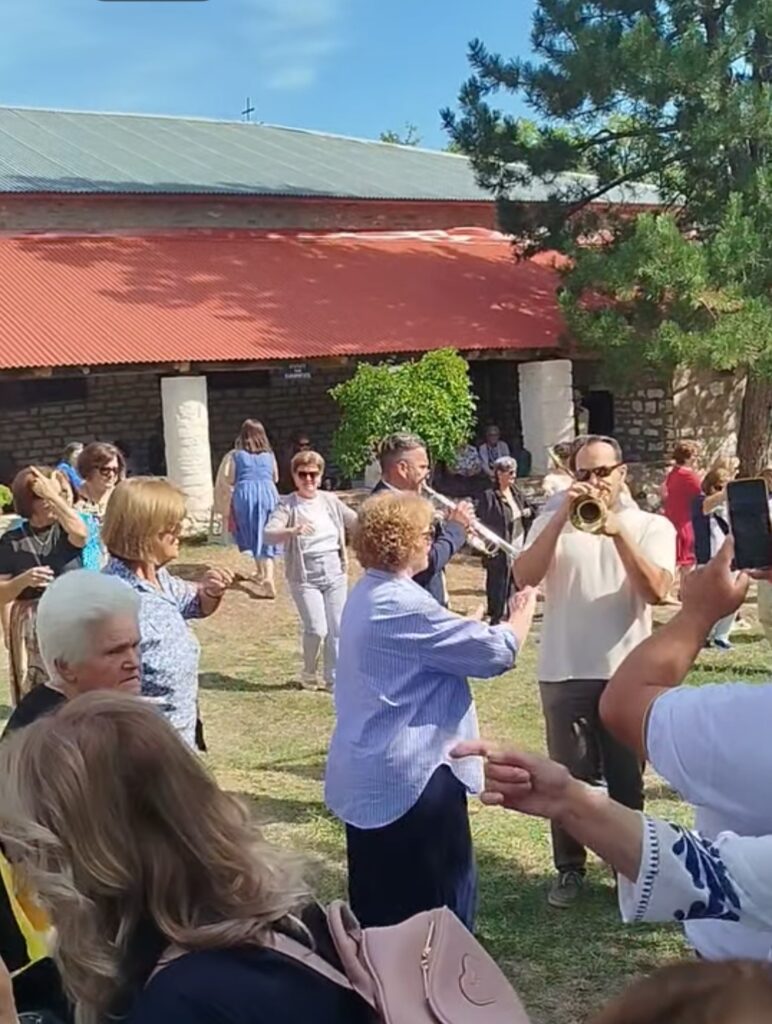 Μετά την θεία λειτουργία στον προαύλιο χώρο τής εκκλησίας έγινε ο χορός Τσιατσος και ο κοσμος χόρεψε με την ορχήστρα του Τάκη Μπετζιου.