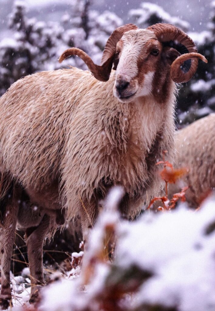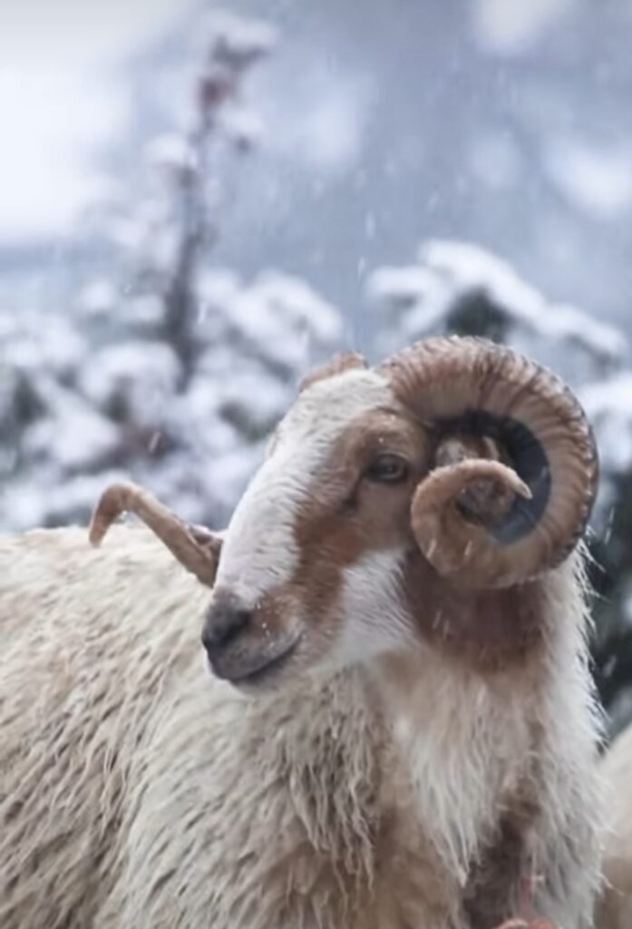 Βλέπουμε τα κοπάδια του Ανθουλη να βόσκουν ανέμελα στο χιονισμένο τοπίο.