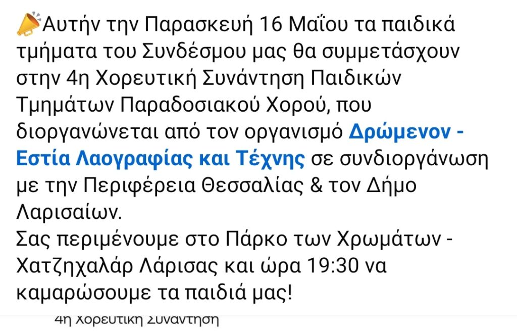 4η Χορευτική συνάντηση παιδικών τμημάτων παραδοσιακού χορού.